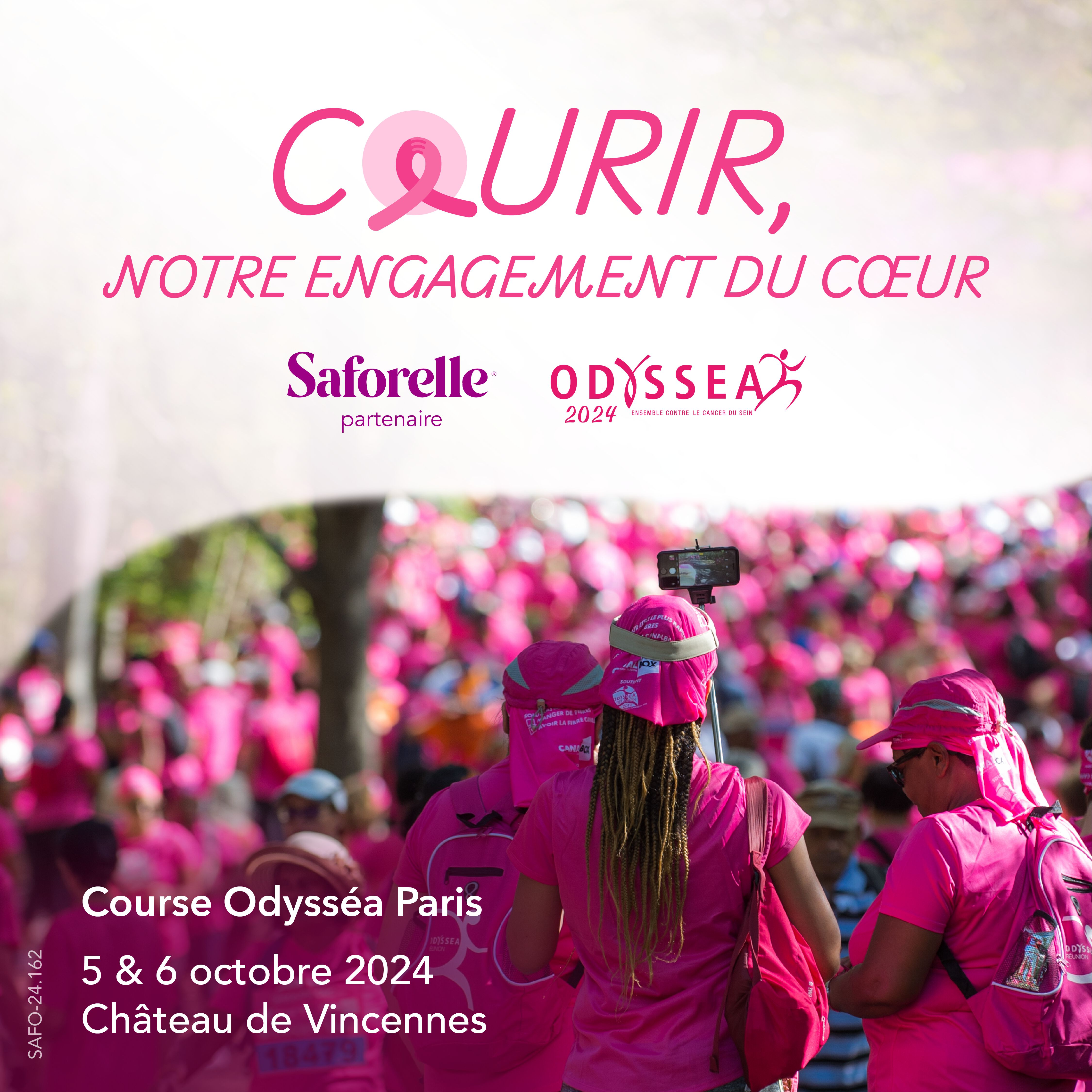 C’est pourquoi, Saforelle participe et sponsorise de nombreuses courses solidaires telles que La Parisienne et Odyssea , des courses qui soutiennent la recherche contre le cancer du sein.